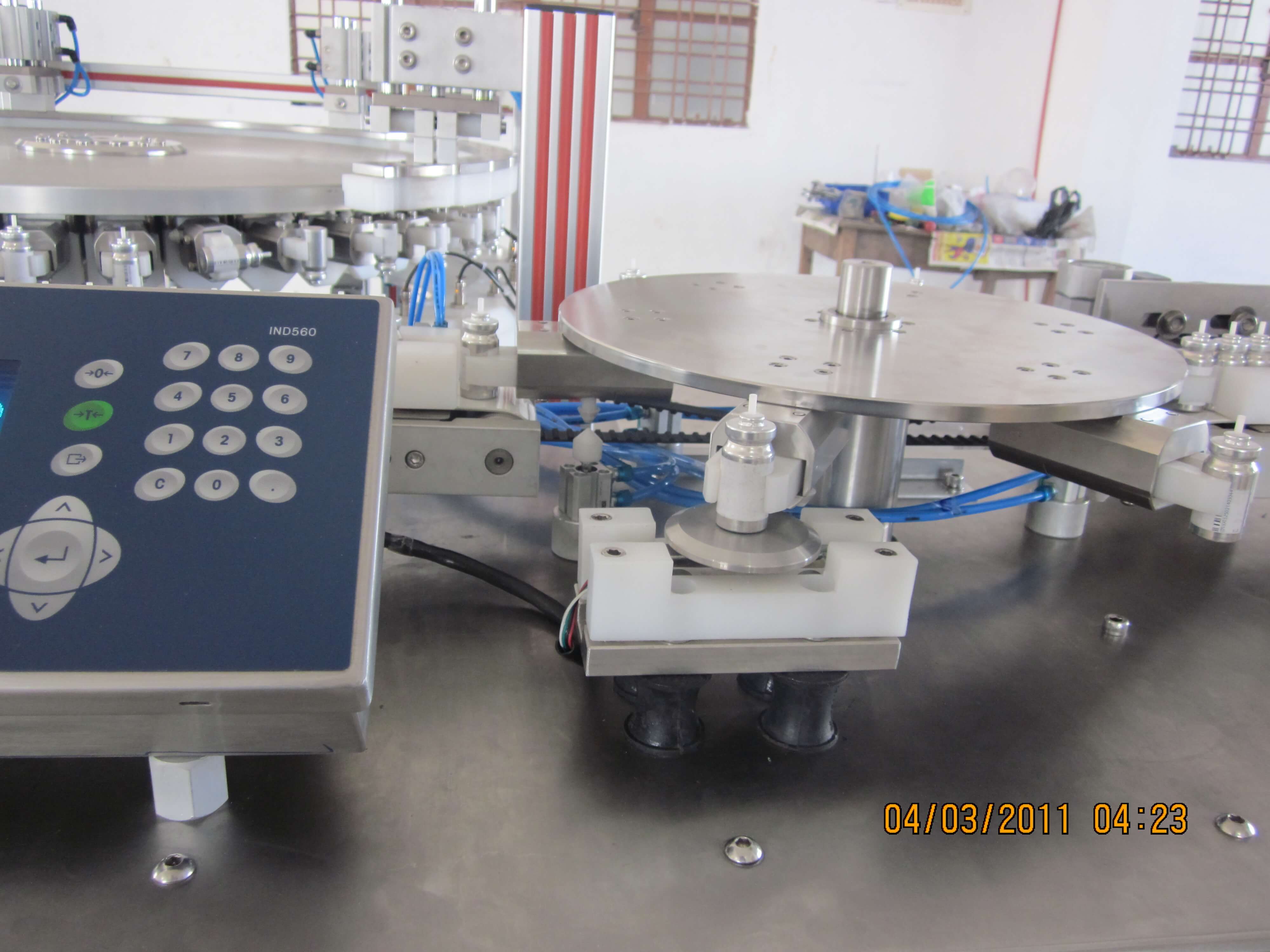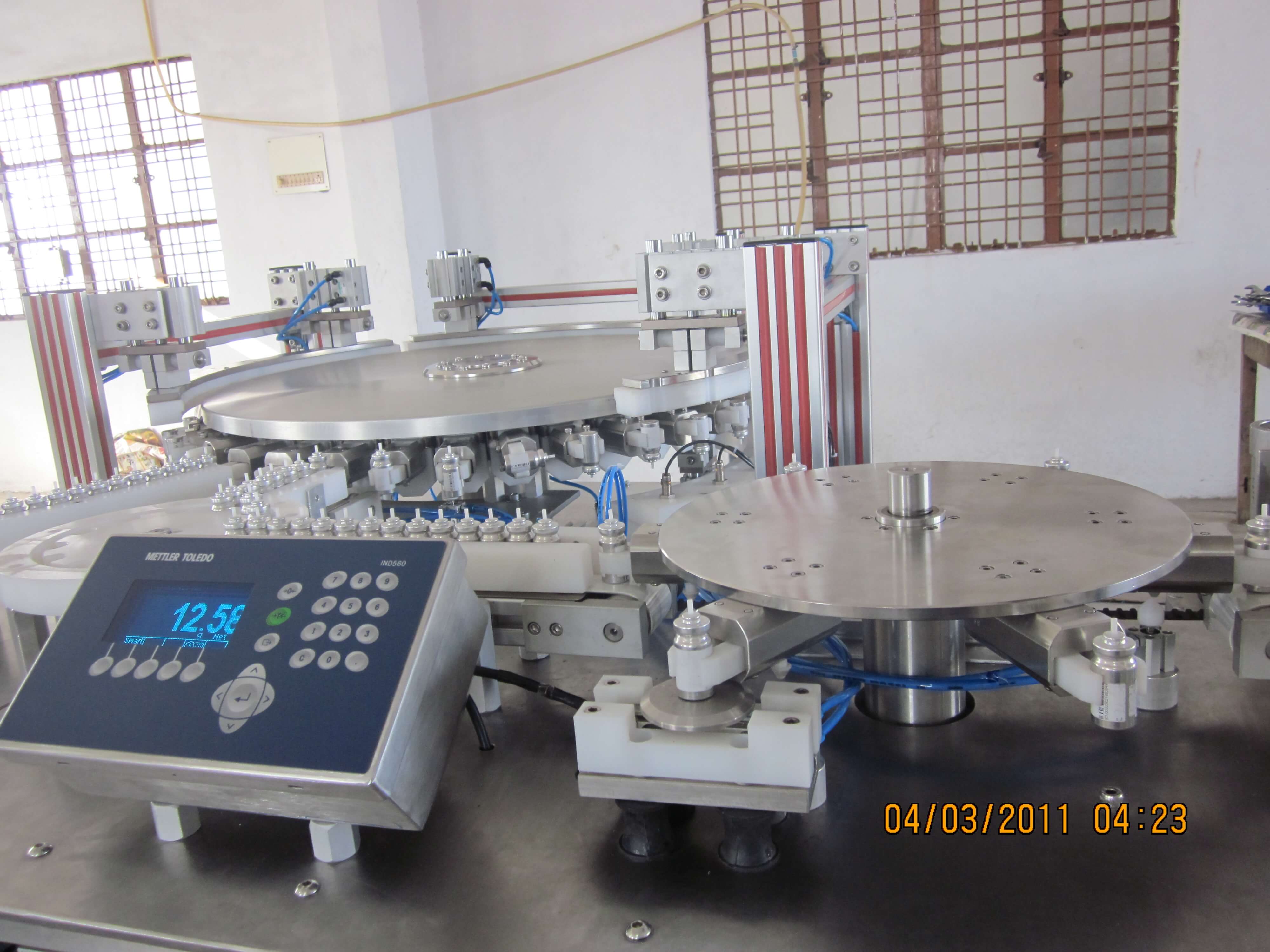 - Finally, online check weighing system is integrated and performs pick & place of the canister with gradual